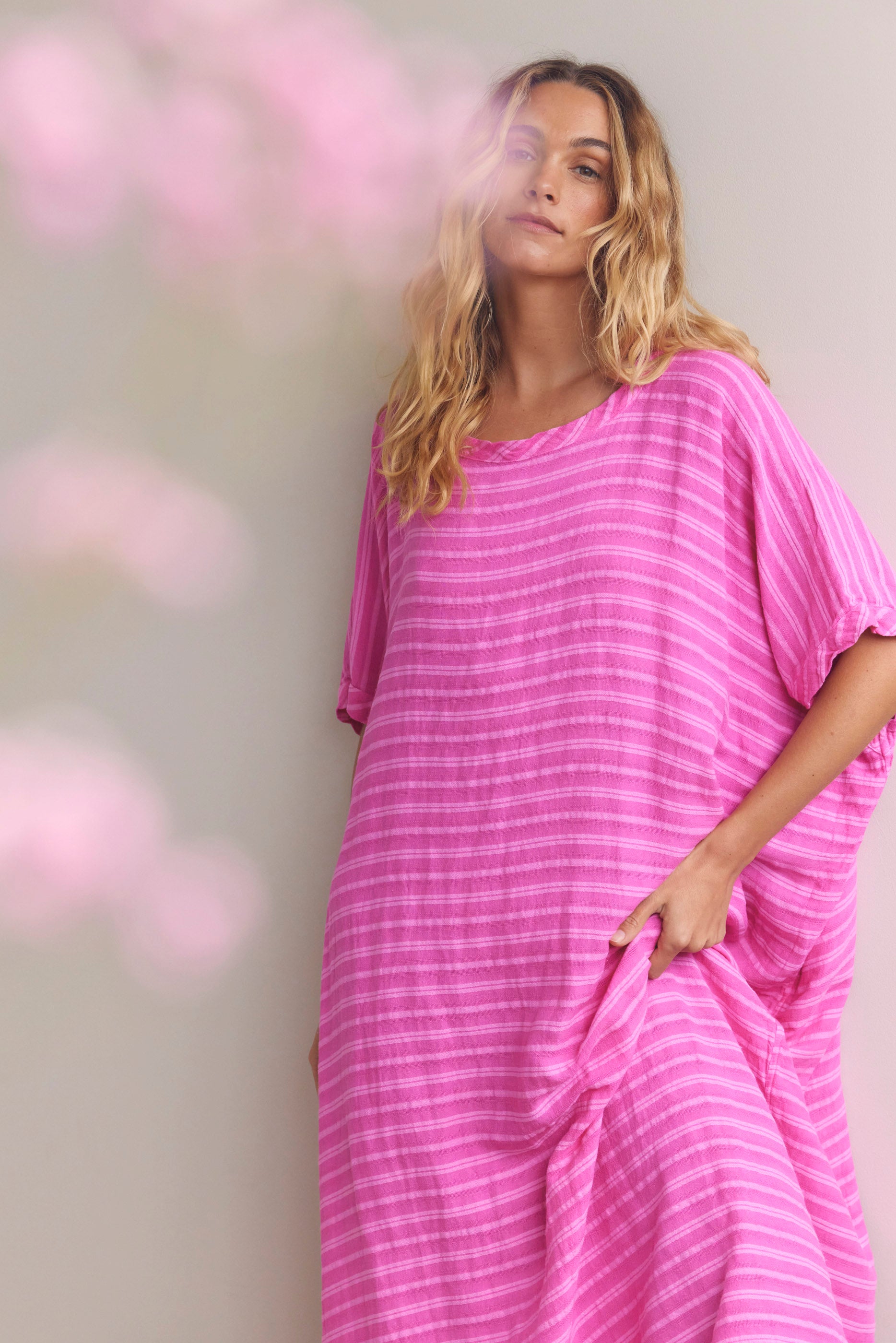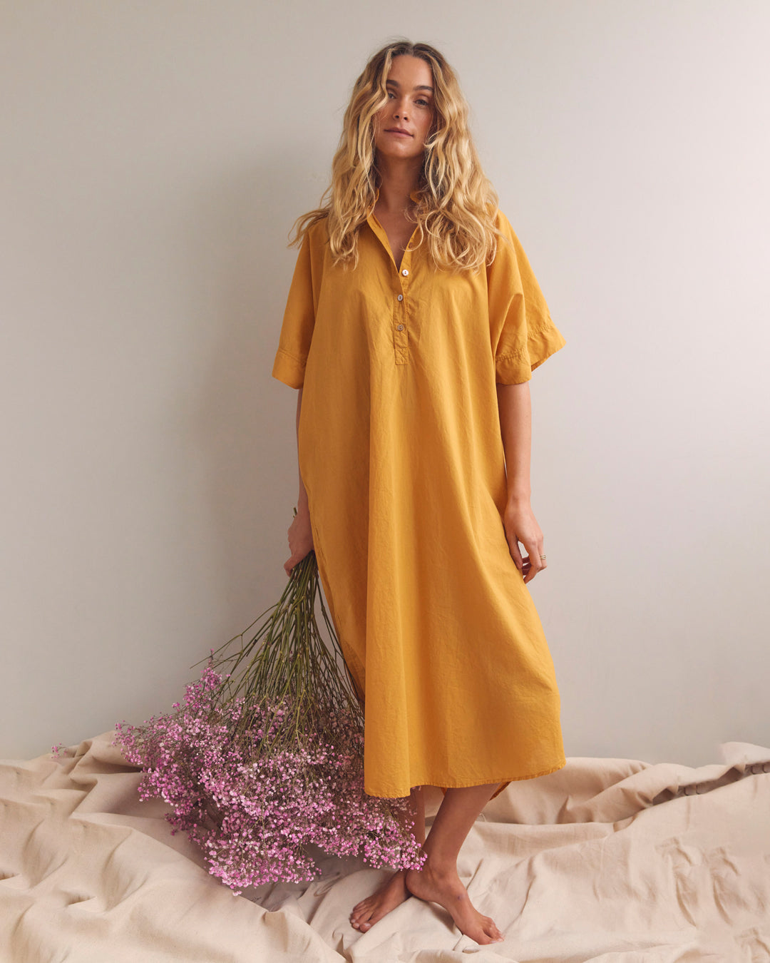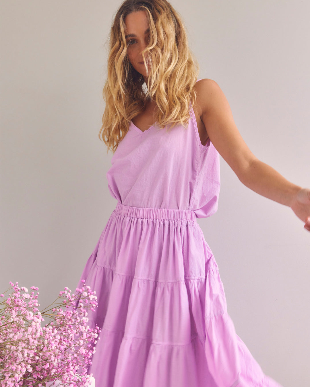 Discover Flora. A collection of growth and blossoming, where nature tells the story. Featuring fluid waterfall like satin silks, dreamy flowing skirts and sleek short sleeve suits. Pretty sheer layers, like petals held up to the sky. Crisp cotton dresses which are a hybrid of styles unified into fresh new shapes. Whispers of effortless ease, evoking a satisfaction in comfort. Colours borrowed from nature, using earthy bark tones and vibrant pops of yellow and pink. Elongated designs, cropped cuts and reliable core basics. Silhouettes for easy living, both calming and grounding. A collection to be celebrated as thriving and flourishing into full bloom.