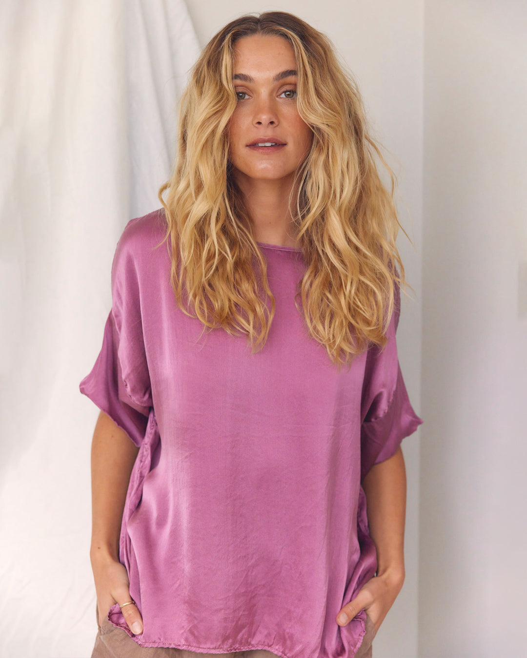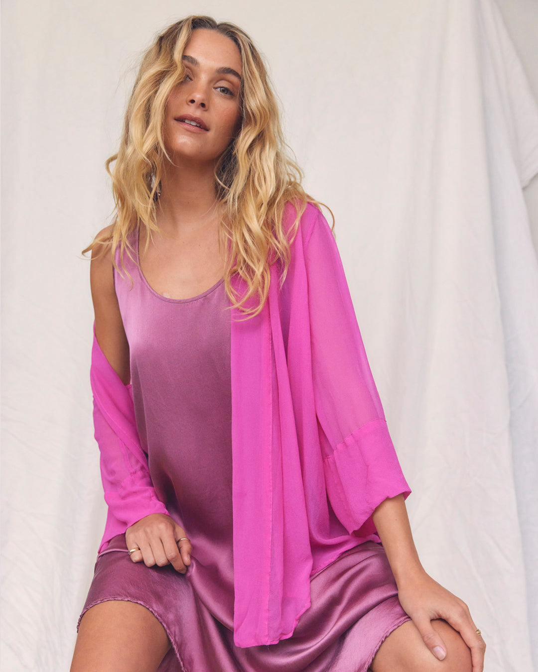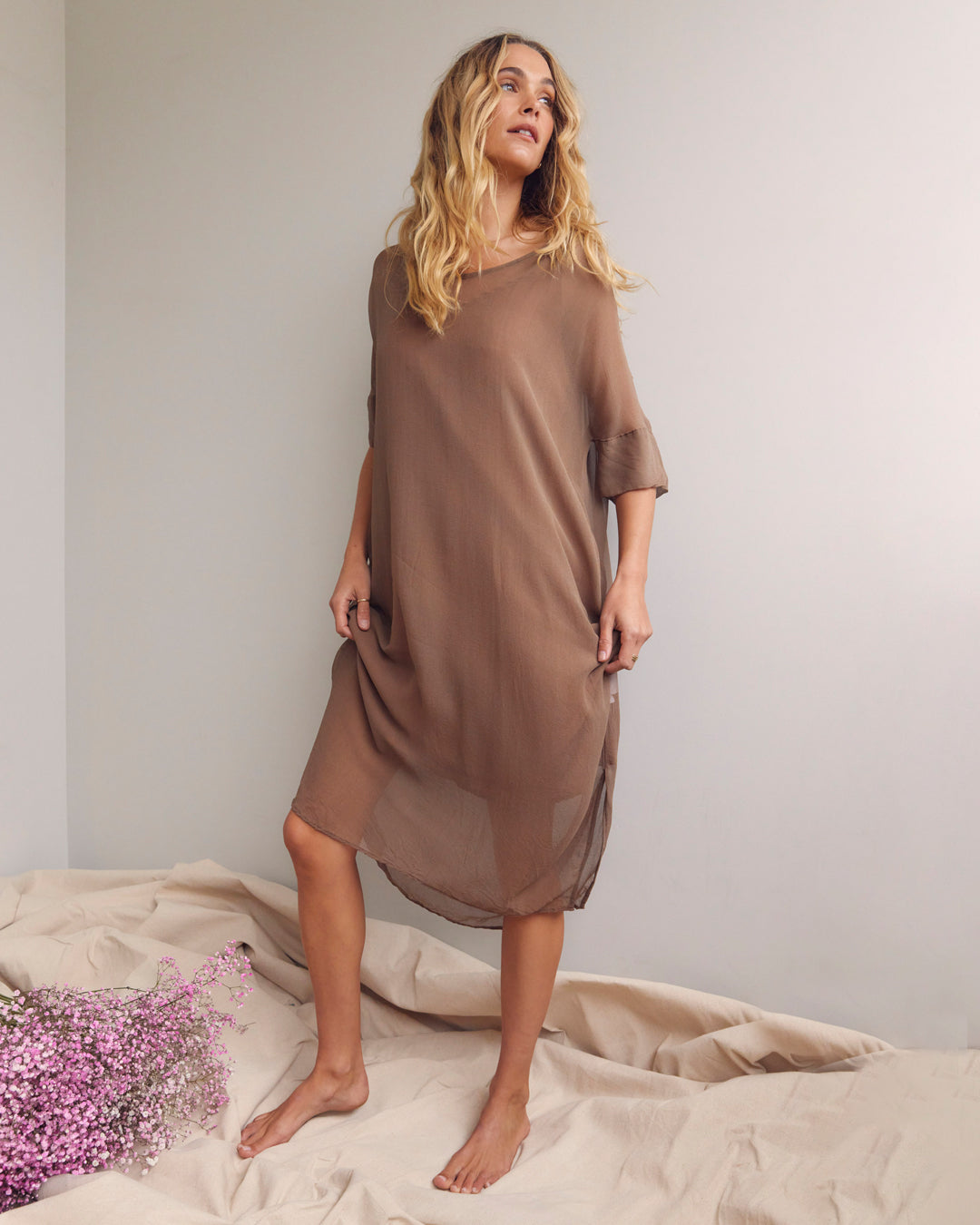 Discover Flora. A collection of growth and blossoming, where nature tells the story. Featuring fluid waterfall like satin silks, dreamy flowing skirts and sleek short sleeve suits. Pretty sheer layers, like petals held up to the sky. Crisp cotton dresses which are a hybrid of styles unified into fresh new shapes. Whispers of effortless ease, evoking a satisfaction in comfort. Colours borrowed from nature, using earthy bark tones and vibrant pops of yellow and pink. Elongated designs, cropped cuts and reliable core basics. Silhouettes for easy living, both calming and grounding. A collection to be celebrated as thriving and flourishing into full bloom.