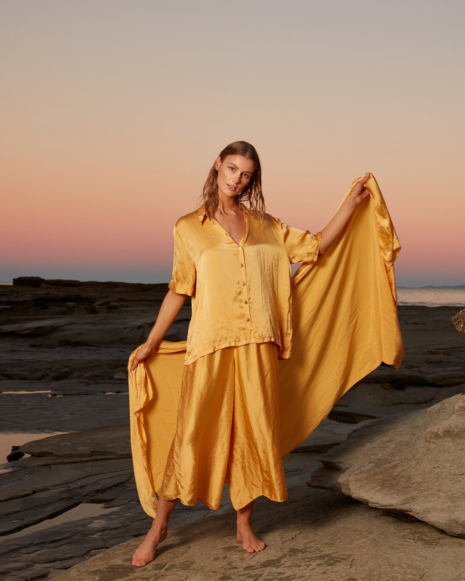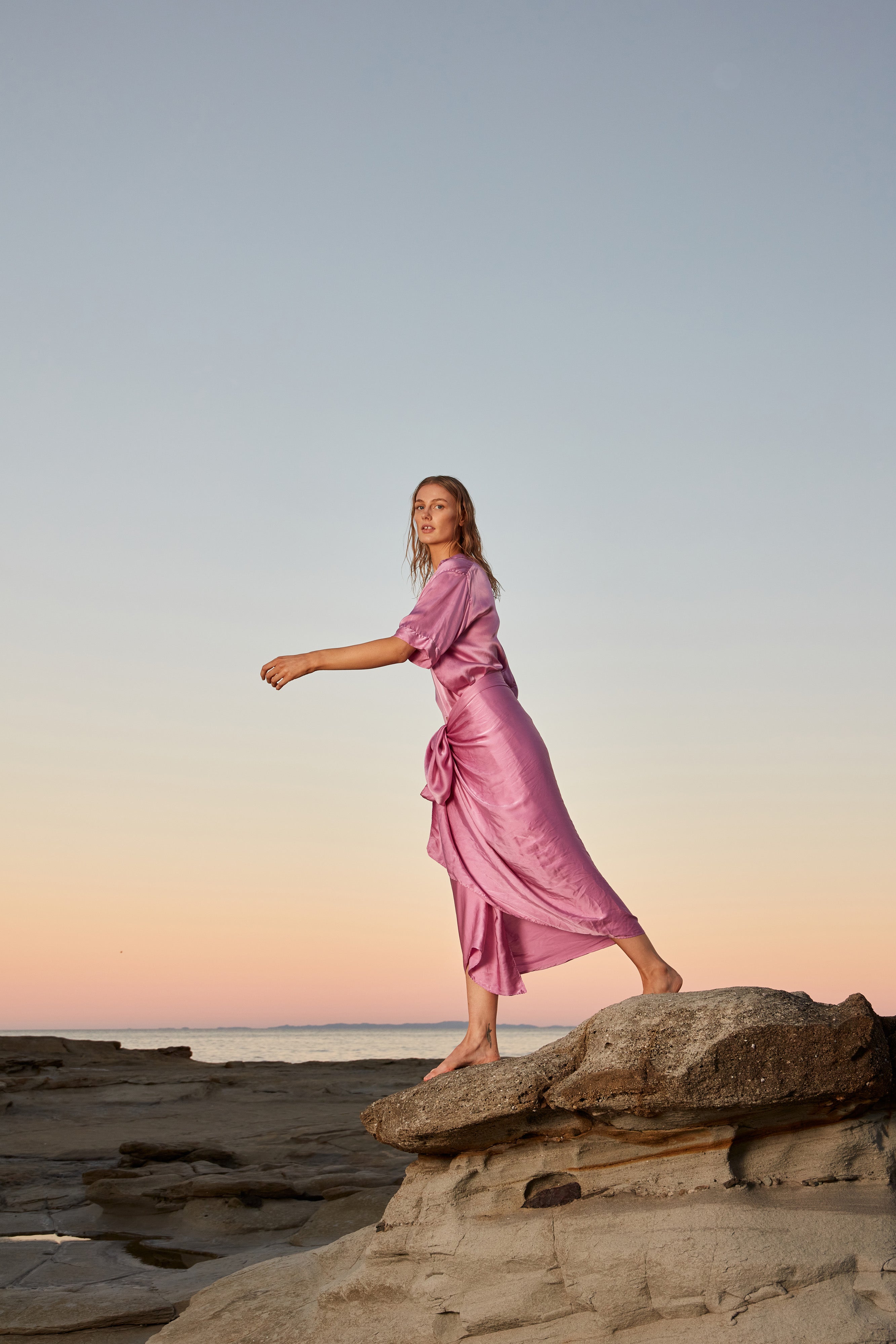 Discover Holiday. A collection that pauses to take its time to celebrate. A decade of Primness. An acknowledgment of what has been. A sweet look back and a happy step forward. A collection that throws focus to that holiday feeling. Salty, sandy and sun kissed. Losing yourself in the joy of nothing. Glossed fluid silks, beached linens and magic tiered dresses. Holiday casual coordinates, striped cotton cover ups and cool terry sets. An explosive celebration of bright tones in popsicle, turquoise, sapphire, sunflower, ocean and carnation pink. Collections that have always been constructed with travel in mind, especially this one. Each item, the ultimate holiday companion. As Primness turns ten, we hope you get to wear a piece to celebrate with us. Welcome to Holiday.