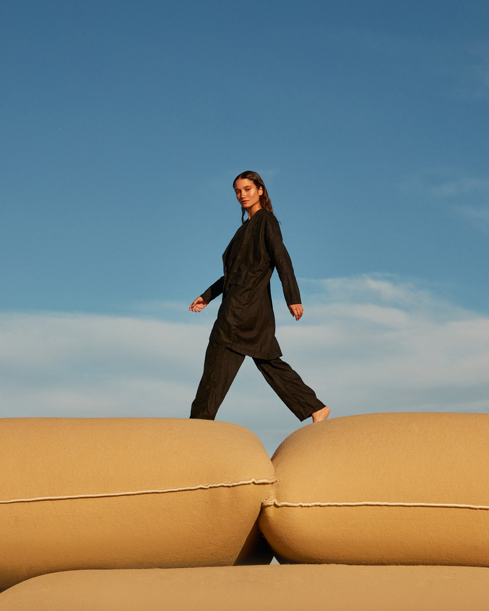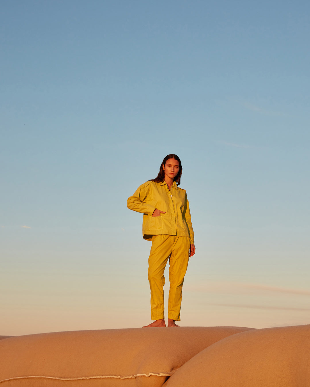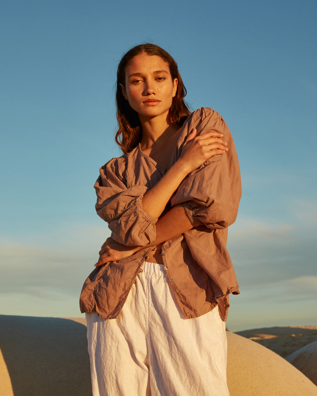 The Nomad. Restless and roaming like a rolling stone. Strong and bold silhouettes versus the soft gypsy. A collection encompassing crisp shirting, billowing sleeves, sheer layers, oversized blazers and cropped jacketing. Soft colours in mushroom, musky rose, camelia with a splice of chartreuse and eggplant. Layers to be worn together or apart, seasonally taking you places. Easy shapes in effortless styles. Shadows of the drifter, the wanderer leaving only a whisper of perfume in the air. Moving from place to place and always evolving. This collection carries us to many destinations. Welcome to Nomad.